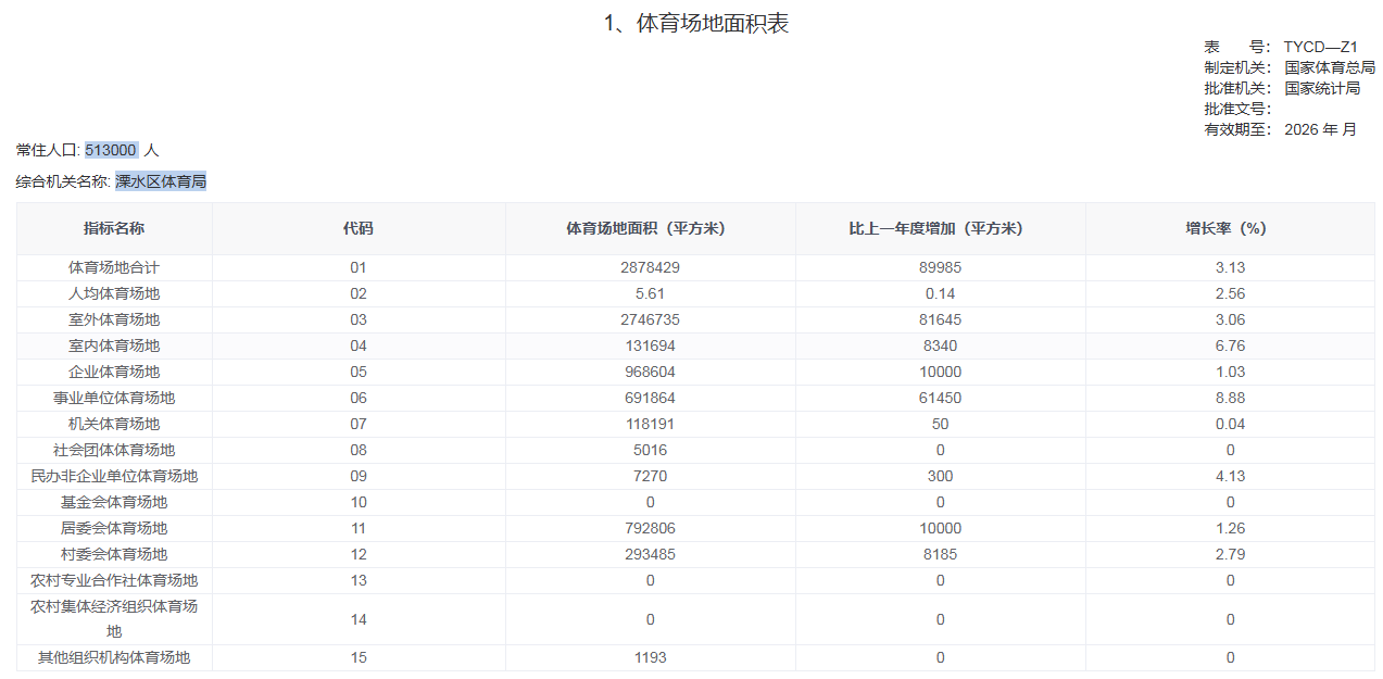 188bet金宝博 共有体育场地面积287.84万平方米,截至高质量发展数据统计平台报告之日常住人口约51.3万人,人均场地面积为5.61平方米。
