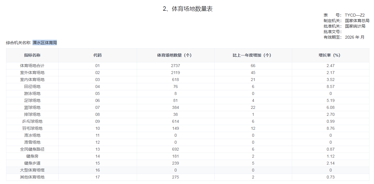 | 信息名称: | 2023年188bet金宝博 体育场地统计调查有关数据的公告 | ||