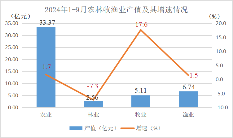 | 信息名称: | 2024年1-9月188bet金宝博 农林牧渔业总产值同比增长3.3% | ||