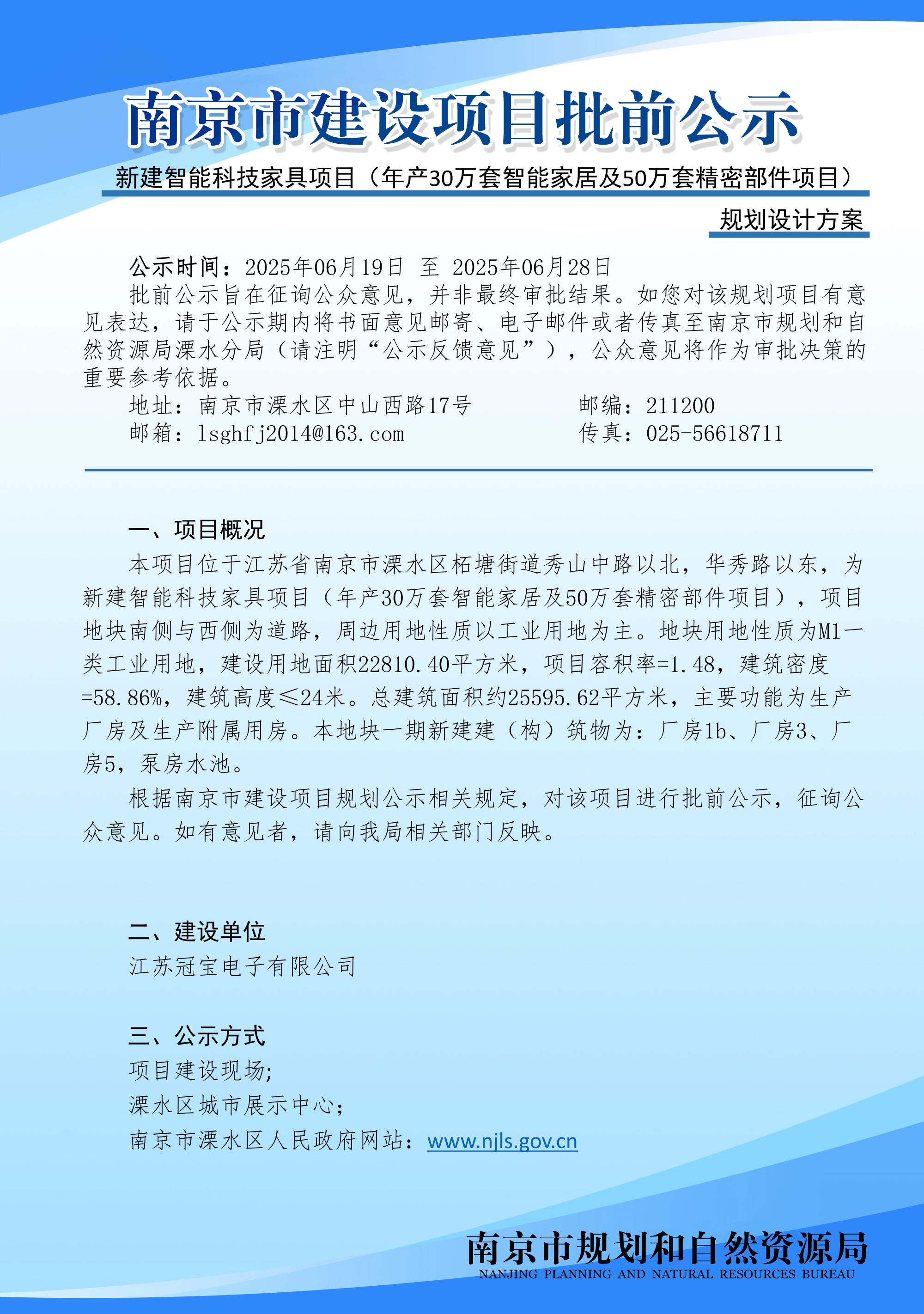 | 信息名称: | 新建智能科技家具项目(年产30万套智能家居及50万套精密部件项目)规划设计方案批前公示 | ||